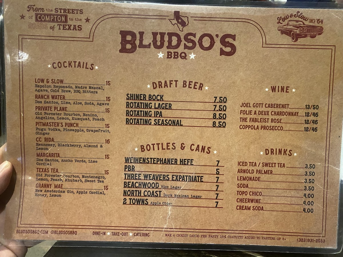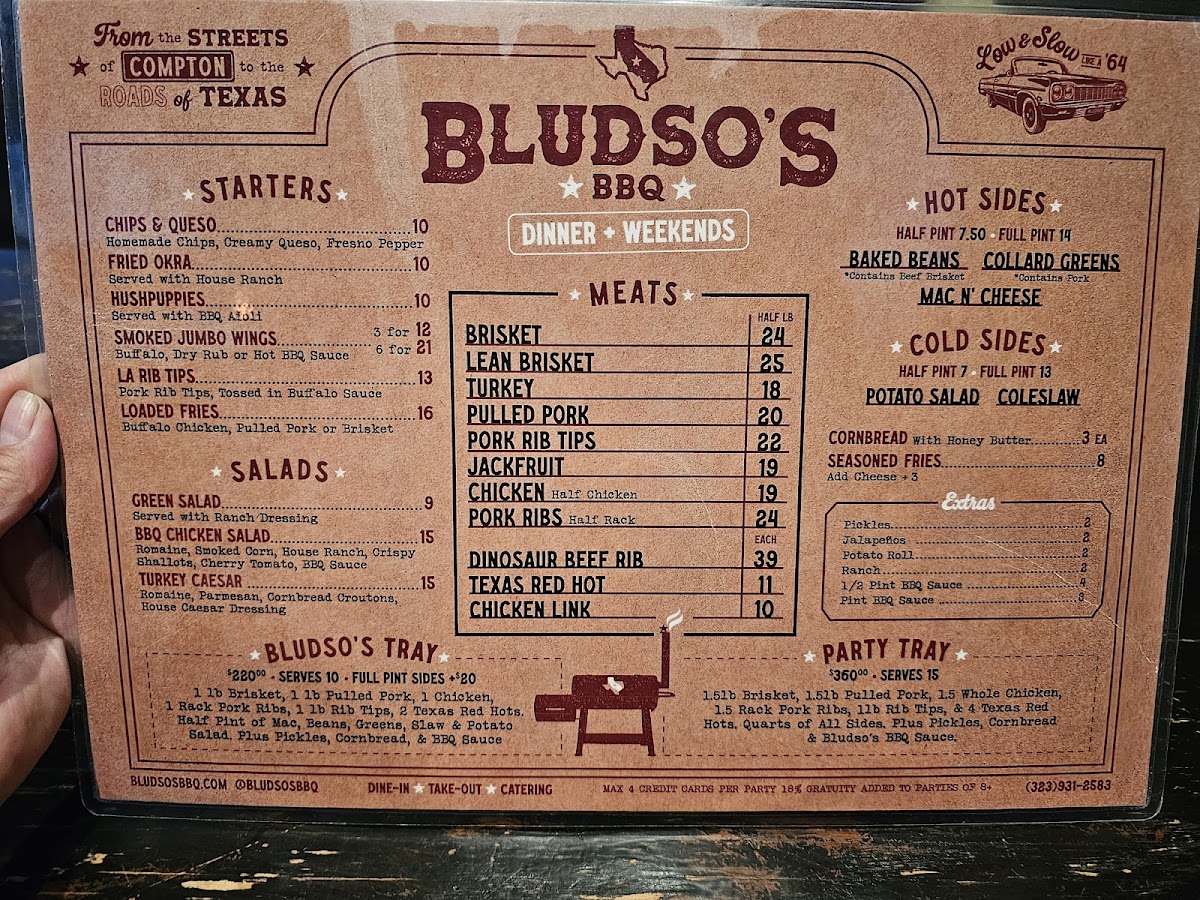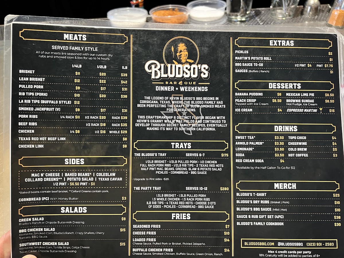 Welcome to Bludso's BBQ, an iconic barbecue restaurant located at 609 N La Brea Ave, Los Angeles, CA. Known for its rich and flavorful offerings, Bludso's presents a menu guaranteed to excite your palate. As you step inside, prepare to indulge in some of the best barbecue dishes in the city!